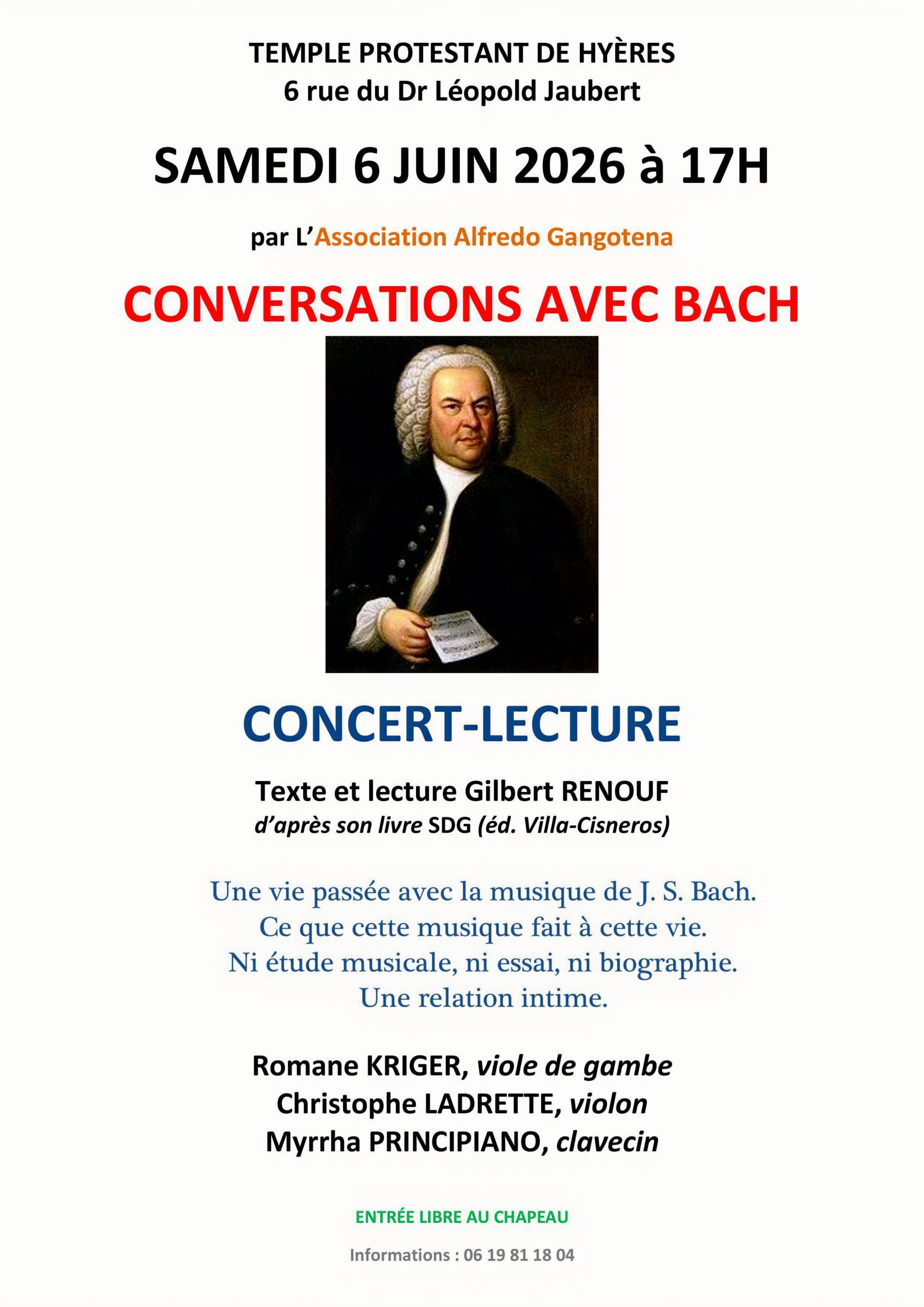 Concert - Lecture au temple : viole de gambe, violon, clavecin